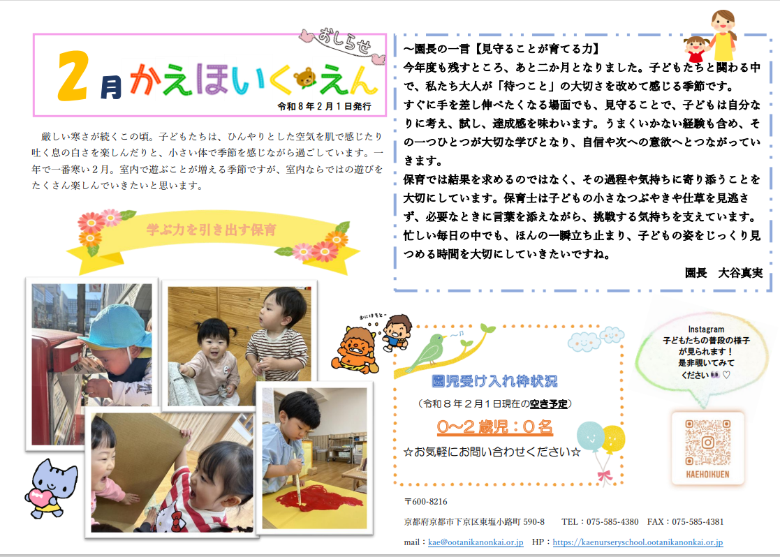 2月嘉恵保育園通信アップしました。