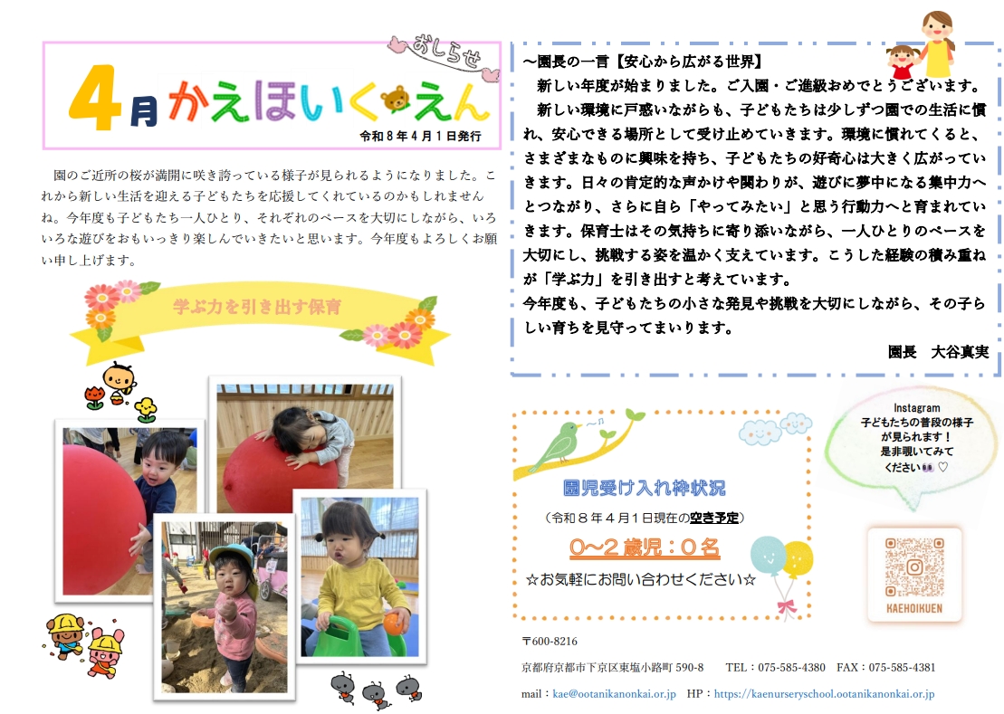 4月嘉恵保育園通信アップしました。